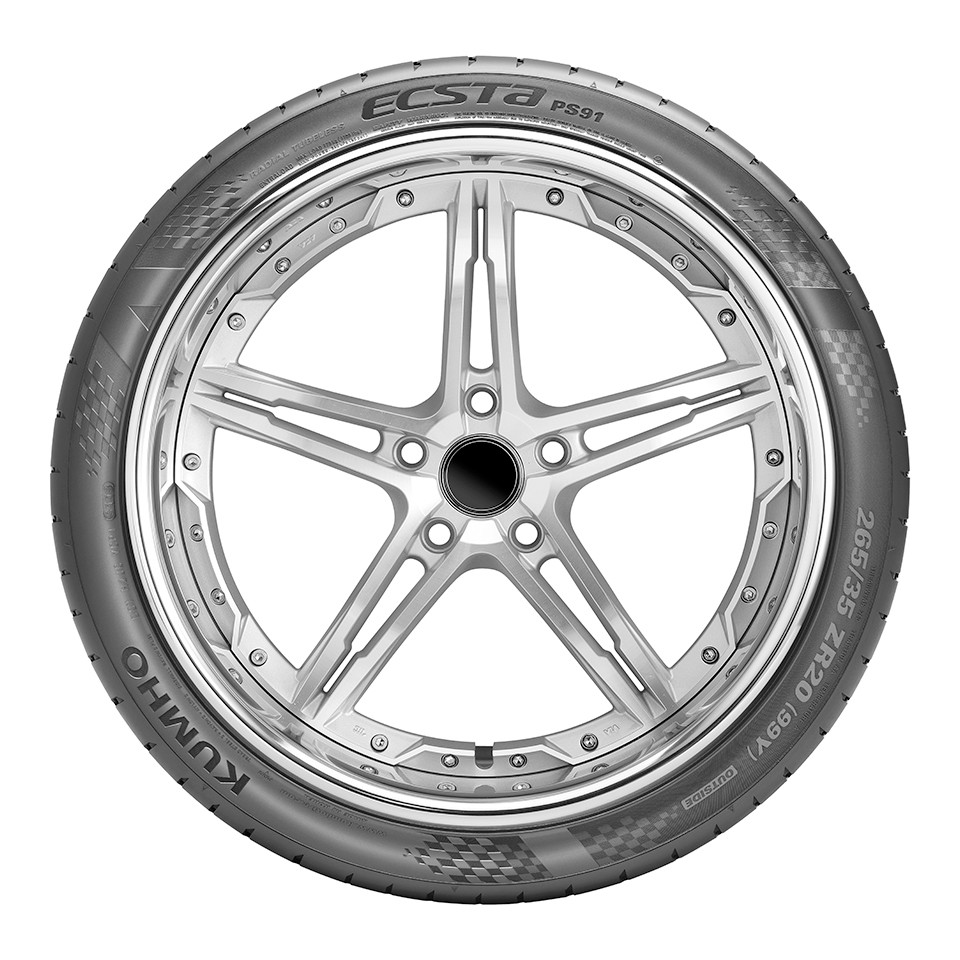 Developed for sports cars. Features: Born from Kumho’s motorsport pedigree, the PS91 provides the ultimate in high-speed driving safety and cornering. The ECSTA PS91 delivers “enhanced grip, braking ability, high-speed durability and uniform ride qualities.” The new range is available for 19 and 20-inch rim diameters with a speed rating over 300km/h Different in / out pattern design - Immediate handling response by wide shoulder and rib-type centre block design - Maximised tyre grip and block stiffness of rear tyres with optimised groove pattern design - Ideal for staggered fitment (Y) Speed rating - Stable durability and running performance at over 300km/h * (Y) Speed rating = the highest speed rating for tyres with speed capability over 300km/h. Tread design - Three dimensional block (C-Cut 3D) and the high-stiffness advanced belt package are applied to deliver high speed stability To fit such cars as Porsche 911, Audi R8, Mercedes AMG, BMW, Lexus, Holden Special Vehicle, Ford Performance Vehicle and so on Speed rating of over 300km/hr A tread compound developed specifically for ultra high performance Excellent levels of wet and dry traction for superior handling and braking